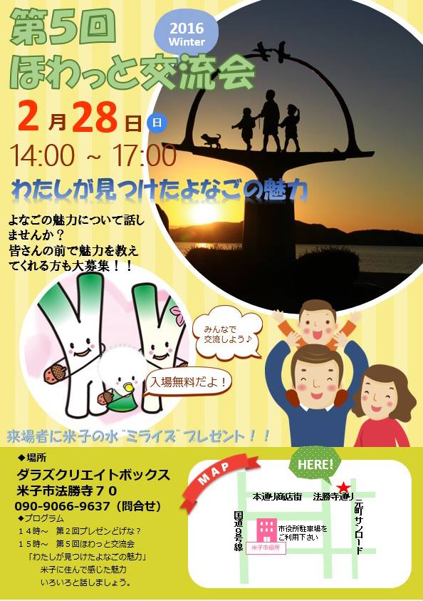 2016年2月28日(日)14時~17時 プレゼンテーションバトル「プレゼンどげな?」と移住者交流会「ほわっと交流会」が同時開催されます。 場所はダラズクリエイトボックス1階 オープンスペース。 私・フルハラも双方参戦させていただきます。